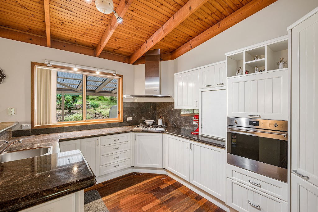 The home is welcoming and easy to live in, with ducted reverse-cycle air conditioning (zoned to the bedrooms plus living/dining/kitchen), ceiling fans throughout, and a cast iron wood fire that makes winter nights feel just right. Raked ceilings add character and space, main bathroom is impressively large, with a corner bath and a warm country feel. The laundry is also oversized and highly functional, with excellent cupboard storage.