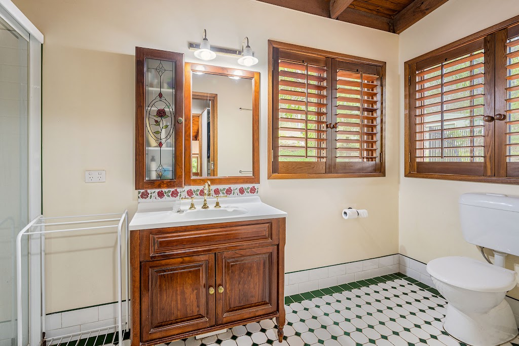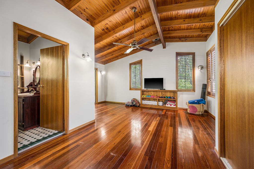 For guests, work-from-home, or a creative space, the studio is a real bonus — connected to the home via a breezeway and fully self-contained with a kitchenette, full-size bathroom, its own split system air conditioning, beautiful timber plantation shutters, and a private undercover balcony.